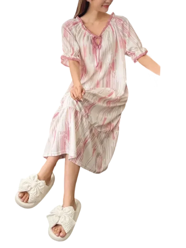 مثالي لليالي الصيفية الدافئة ولإطلالة منزلية أنيقة ومريحة لأنك تستحقين الراحة والجمال في كل لحظة مناسب لوزن 90 كيلو وحتي 120 كيلو اطلبي قبل نفاذ الكميةالخامة: ريب مضلع ليكرا
