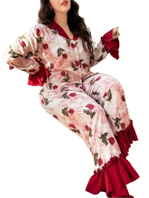 السعر: 465 جنيهبجاما بيتي صيفي رقيقة بخامة قطن ليكرا ناعمة وخفيفة، تصميم واسع ومريح مناسب للمقاسات الكبيرة ويدي حرية حركة وشعور بالراحة طول اليوم، نقشة مشجرة هادية مع تفاصيل كشكشة تضيف لمسة أنوثة شيك، قطعة عملية وأساسية للبيت والاسترخاء وتناسب الاستخدام اليومي بكل راحة
