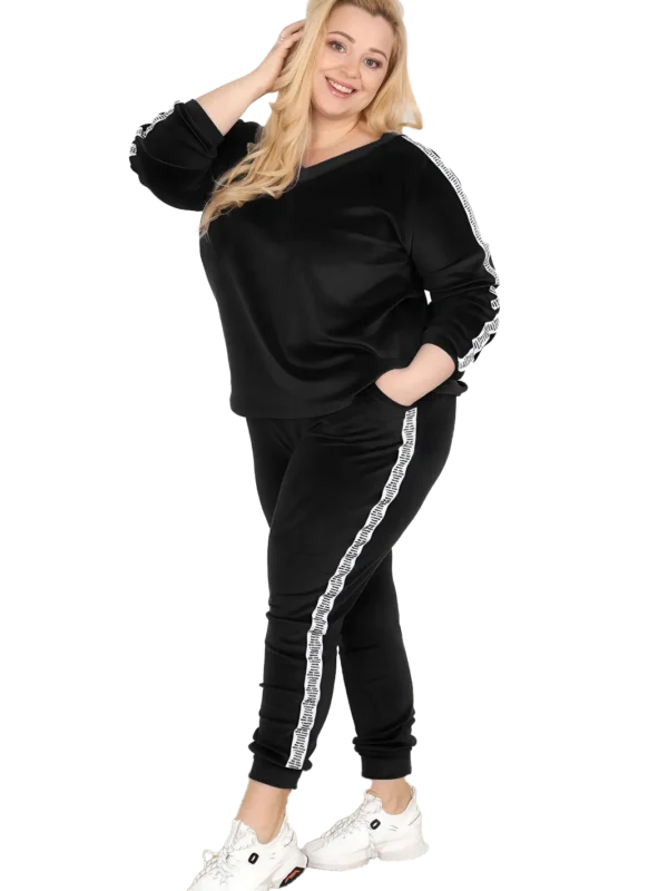 يتميز بخطوط رياضية على الأكمام وشعار صغير على الصدر لإضافة لمسة شبابية عصرية، مع شقوق جانبية لضمان حرية الحركة أثناء المشي والجلوس البنطلون يأتي بقصة مستقيمة مريحة، بلون أسود سادة ليمنح الطقم شكلًا موحدًا وراقيًا، يناسب هذا الطقم المقاسات من 90 حتى 120 كيلو بفضل وسع التصميم ومرونة الخامة، مناسب جدًا للخروج اليومي، الجامعة، مشاوير الصبح، التمارين الخفيفة، أو حتى السفر، شكله محتشم وعملي ومثالي لمحبات الستايل الخريفي الهادئ، خامة سمر ميلتون تمنحك حرارة خفيفة بدون ما تشعرك بالعرق أو الثقل، مما يجعل القطعة مناسبة للبس لفترات طويلة، تصميمه البسيط يجعله قطعة أساسية في دولابك، ويمكن تنسيقه مع أي حذاء رياضي أو حقيبة كبيرة بسهولة طقم خريفي شيك وواسع، يجمع بين الراحة والأناقة اليومية.