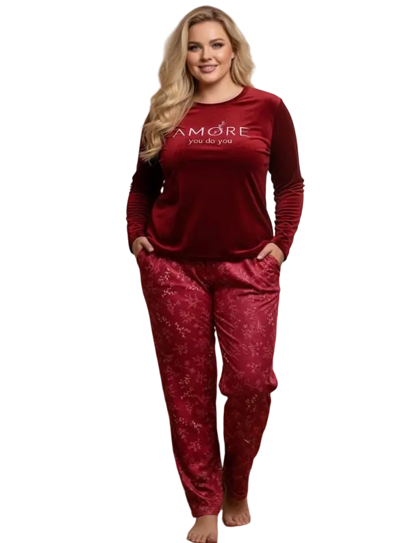 السعر: 545 جنيهبجاما قطيفة بيج سايز هي بجاما شتوية تجمع بين الدفا، الراحة، والشكل الأنيق، هي اختيارك الصح، طقم شتوي تقيل مصمم مخصوص للمقاسات الكبيرة، علشان يديك إحساس راحة وثقة من غير أي تنازل عن الستايل، الطقم مكون من بلوزة سوداء بتصميم عصري وعبارة تضيف لمسة جريئة وشيك، مع بنطلون بنقشة أنيقة تضيف تميز مختلف، خامة القطيفة الهايدي التقيلة تدي إحساس دفا فوري، وناعمة على الجسم، مناسبة للبرد القارس، القَصة الواسعة تخلي الطقم مريح للحركة، مناسب للبيت، النوم، والجلوس اليومي، وكمان ينفع للخروجات السريعة، تصميمه يخفي العيوب ويبرز الجسم بشكل متناسق، ويديكي حرية حركة طول اليوم.