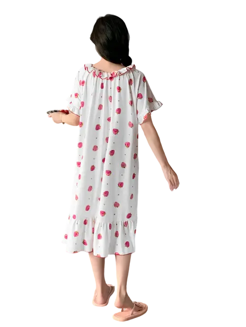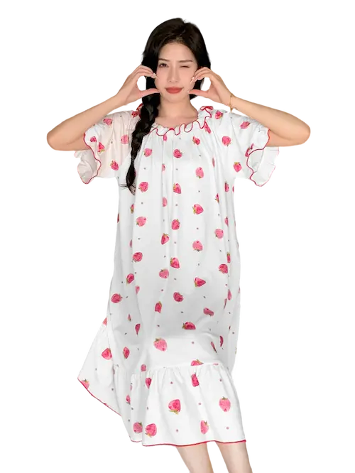 دللي نفسك بالنعومة والأنوثة مع الكاش المنزلي مفعم بالحيوية والرقة بتصميم مريح واسع بقصة انسيابية تمنحك حرية الحركة طوال اليوم يأتي بلون أبيض مزين بطبعة ورود وردية ناعمة تضيف لمسة من البهجة والأنوثة مع تفاصيل كشكش جذابة على الرقبة والأكمام والحافة السفلية القماش خفيف وناعم على البشرة مثالي لأجواء الصيف والاسترخاء داخل المنزل إطلالة مريحة وأناقة لا تقاوم احصلي عليها الآن وعيشي لحظاتك المنزلية بأناقة لا مثيل لها