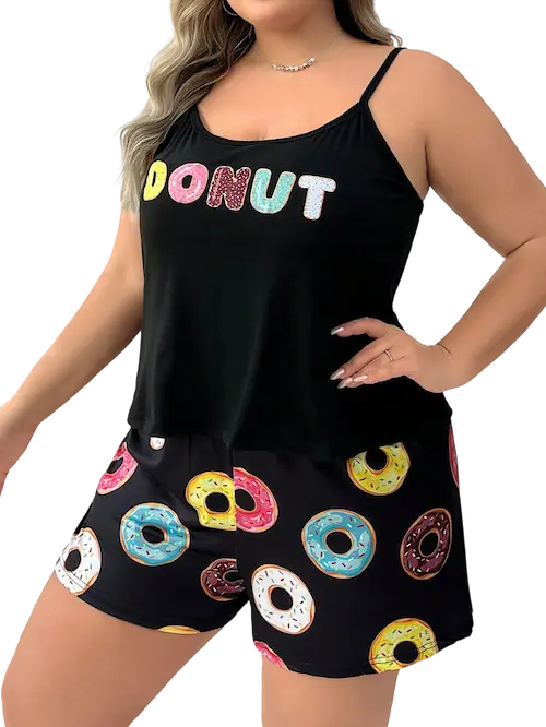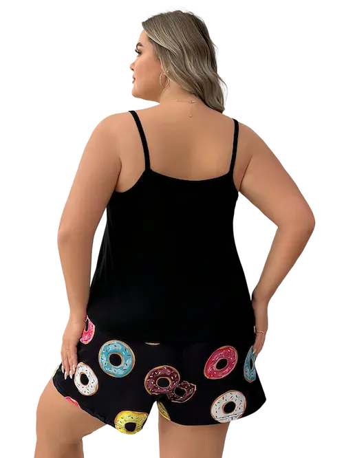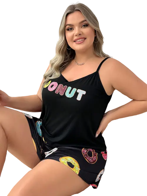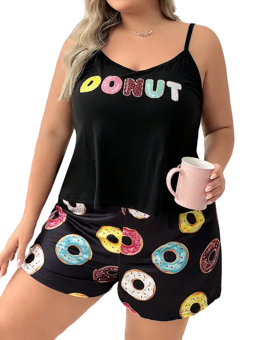 دللي نفسك بإطلالة ليلية لا تقاوم مع بيجامة المصممة خصيصا لتجمع بين الراحة الفائقة واللمسة العصرية المرحة قميص أسود ناعم بلا أكمام مزين بكلمة DONUT الملونة بأسلوب جذاب، مع شورت مفعم بالألوان بطبعات دونات شهية تضفي طابعًا شبابيا مرحا على مظهرك المنزلي تصميم أنثوي جريء بلمسة مرحة خامة ناعمة، مريحة وملائمة لكل الأوقات مثالية للنوم أو الاسترخاء بأسلوب أنيق ومميز لأنك تستحقين الراحة بأناقة اجعلي بيجامة شورت خيارك الأول كل مساء