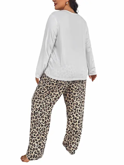 ارتقي بإطلالتك المنزلية مع بيجاما المصممة بعناية لتقدم لك أعلى درجات الراحة مع لمسة أناقة عصرية بنقشة الليوبارد الساحرة هذا الطقم يجمع بين خامة ناعمة وتصميم متناسق يجعل كل تفاصيله مريحة وجذابة في نفس الوقت خامة قطنية مخلوطة عالية الجودة تمنحك إحساس نعومة فائق على البشرة نسيج قابل للتمدد بشكل خفيف لضمان راحة أكبر أثناء الحركة أو الاسترخاء خامة خفيفة وتهوية ممتازة تمنع الشعور بالحرارة أو الضيق خلال اليوم اللون أبيض ناصع يمنح شكلا ناعما وإحساسا بالنظافة والانتعاش تصميم مزينة بطبعة قلب كبير بنقشة ليوبارد في المنتصف لإضافة لمسة أنثوية جذابة قصة واسعة ومريحة مناسبة للمقاسات الكبيرة أكمام طويلة خفيفة توفر تغطية بدون حرارة زائدة ياقة مستديرة ناعمة لا تسبب أي احتكاك عند الاستخدام الطويل البنطلون بنقشة ليوبارد بالكامل بلون بيج وأسود، تمنح الطقم شخصية قوية ولمسة جريئة قصة واسعة وفضفاضة لتعزيز الراحة، خاصة للمقاسات الكبيرة.