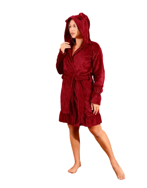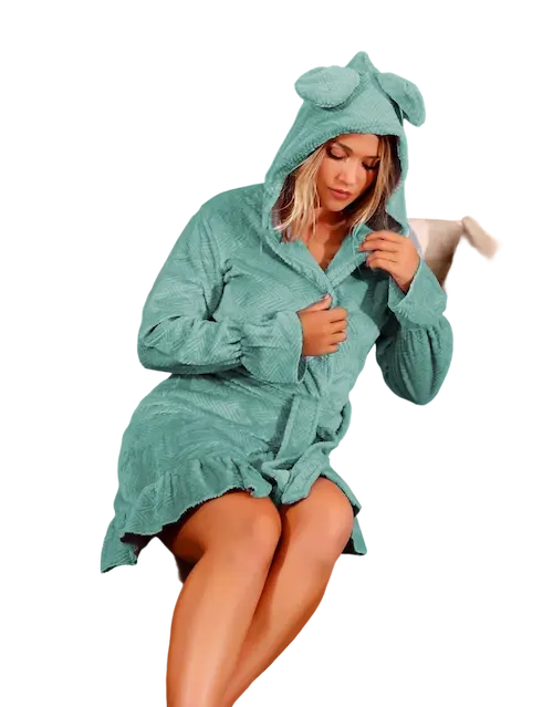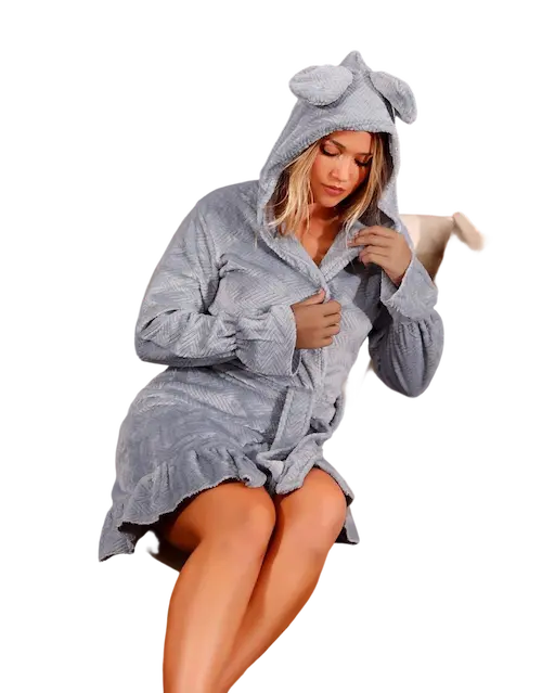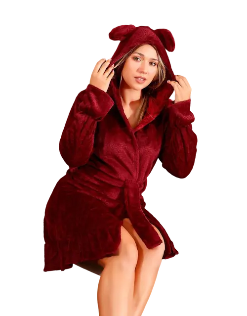 استمتعي وتألقي بكل جديد من متجر هدوم بنات احصلي علي روب قصير مزود بحزام علي الخصر وله كابتشو للمزيد من التدفأ في ليالي البرد فهو مصنوع من افضل خامات البولار وشين خامة ناعمة وطرية علي بشرتك تألقي بلمسة عصرية وجذابة عندما ترتدية مناسب للمقاسات بداية من50 كيلو وإلي 80 كيلو مما يجعله القطعة الاساسية في خزانتك