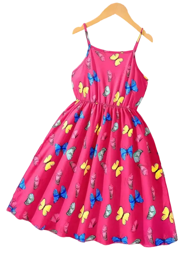لو بتحبي الألوان الحيوية والرسومات المبهجة اللي تخلي إطلالتك مختلفة ومليانة طاقة يبقى دريس صيفي مبهج هو اختيارك المثالي فستان صيفي بنقشة فراشات ملونة على أرضية فوشيا جذابة يدي إحساس بالبهجة والأنوثة في نفس الوقت، الموديل مناسب للخروجات الصيفية والمصيف والكافيهات والمشاوير الخفيفة وكمان ينفع لتجمعات الأصدقاء وأعياد الميلاد تقدري تلبسيه في أي وقت وتحسي بالراحة والثقة