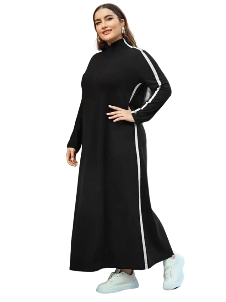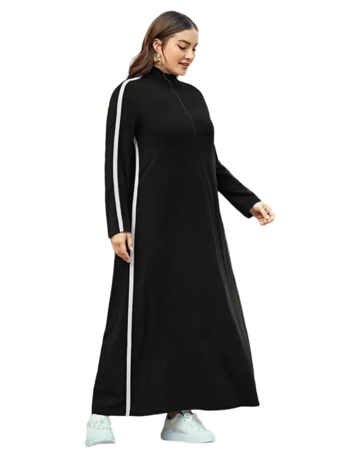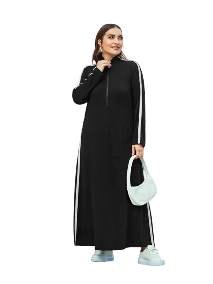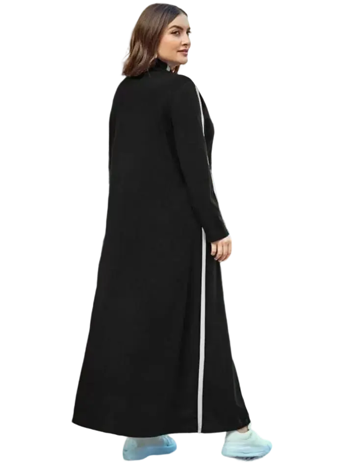 - الرقبة عالية بسحاب عملي، يخلي اللبس سهل وسريع، وكمان بيدي شكل رياضي عصري، الأكمام طويلة ومريحة، مناسبة لفصل الشتاء أو الجو المعتدل، وتدي إحساس بالدفا من غير تقيل، الطول مناسب وعملي، يخلي العباية مناسبة للخروج، المشاوير، السفر، وحتى اللبس اليومي.