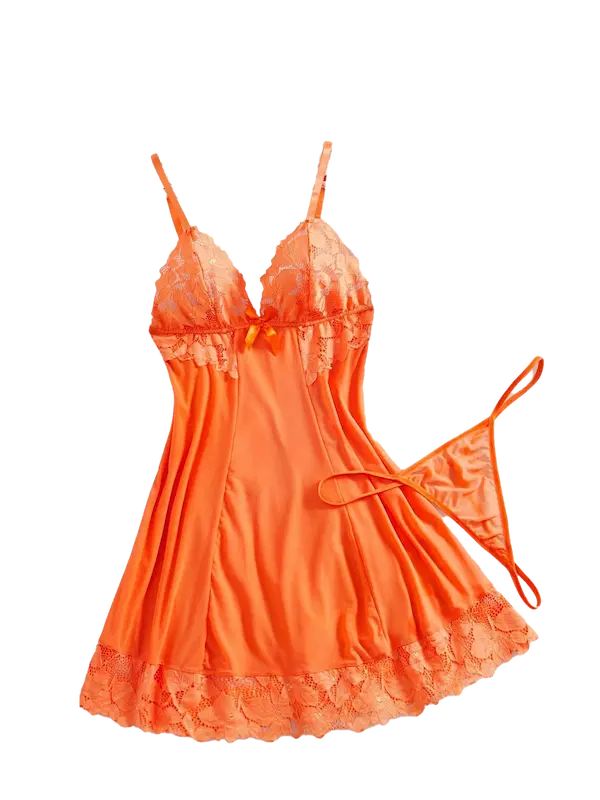 - التصميم قصير بحمالات رفيعة، مع صدر من الدانتيل المنقوش يضيف لمسة أنثوية جذابة، وتفاصيل ناعمة تبرز جمال الصدر بشكل راقي، القصة من الأسفل واسعة قليلًا، تساعد على إخفاء أي عيوب وتناسب مختلف أشكال الجسم، خصوصًا مقاسات البيج سايز.