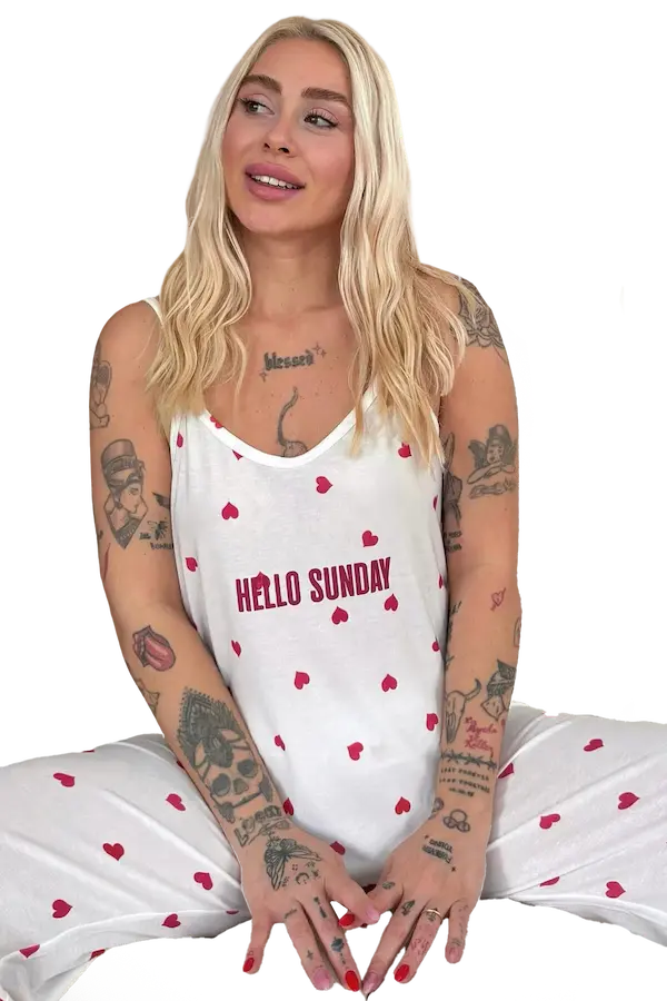 ابدئي يومك براحة وأناقة استمتعي بأجواء صباحية دافئة مع بيجامة المصنوعة من قماش ناعم وخفيف يمنحك إحساسا بالراحة طوال اليوم تصميمها الأنثوي المزين بقلوب حمراء صغيرة يضيف لمسة من البهجة والحيوية بينما يمنحك البنطلون الفضفاض حرية الحركة خامة عالية الجودة وملمس ناعم على البشرة تصميم عصري بلمسات أنثوية ساحرة مثالية لأمسيات الاسترخاء أو صباحات عطلة نهاية الأسبوع