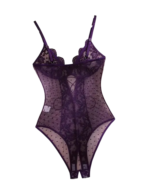 - الجزء العلوي مصمم بحمالات رفيعة قابلة للتعديل علشان يديكي راحة اكبر وثبات افضل مع صدر مشغول بدانتيل ليكرا ناعم يدي شكل جميل ويبرز الانوثة بشكل جذاب ومتناسق التصميم من الخلف مفتوح بلمسة جريئة تضيف سحر خاص وتخلي القطعة مختلفة عن اي لانجري تقليدي