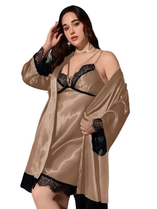 لو بتدوري على قميص بروب راقي ومريح يظهر جمالك ويخليكي واثقة من نفسك في كل لحظة، فالموديل ده معمول مخصوص ليكي. تصميمه الانسيابي وخامته اللامعة بيلفت النظر، والدانتيل الناعم بيدي لمسة أنوثة فاخرة تخليكي تحسي إنك مميزة. مناسب للسيدات اللي بتحب تجمع بين الراحة والجاذبية في نفس الوقت، وبيظهر جمال الجسم بدون أي مبالغة ومش بس كده تقدري تختاري موديلات تانية من متجرنا بألوان وخامات مختلفة عشان تلاقي اللي يناسب ذوقك ومناسباتك مثل ارواب ستان طويلة بيج سايز – بيبي دول قطعتين مميز – روب ابيض للعرايس شيك لأنك تستاهلي الأفضل دائما.