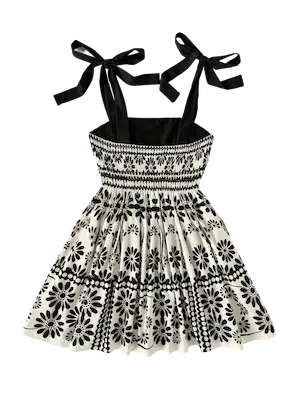 دريس منقوش رقيق هو فستان قصير بقصة واسعة وخصر مطاطي مريح مع صدر مربع وحمالات برباط قابل للتعديل يتميز بنقشة زهور سوداء جذابة على أرضية فاتحة خامة قطن ليكرا مرنة ومناسبة للصيف والتلبيس من 50 إلى 75 كيلو