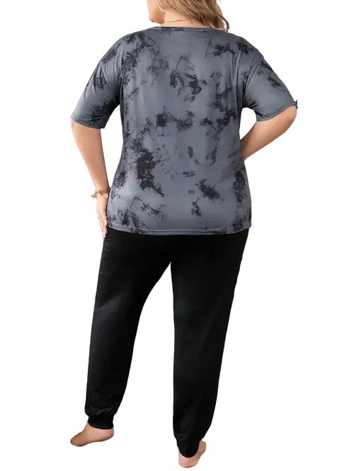 استمتعي بأوقاتك في المنزل وأثناء النوم مع بيجامات حريمي عالية الجودة، تتميز هذه البيجامات بتصميم مريح يناسب المقاسات من 90 كيلو إلى 120 كيلو، مما يجعلها مثالية للنساء ذو المقاسات الكبيرة مصنوعة من قطن ليكرا توفر الراحة طوال اليوم تأتي بتيشيرت مشجر مع بنطلون سادة تعطي لمسة من الرقي في منزلك مثالية للارتداء أثناء الاسترخاء بالمنزل والنوم.