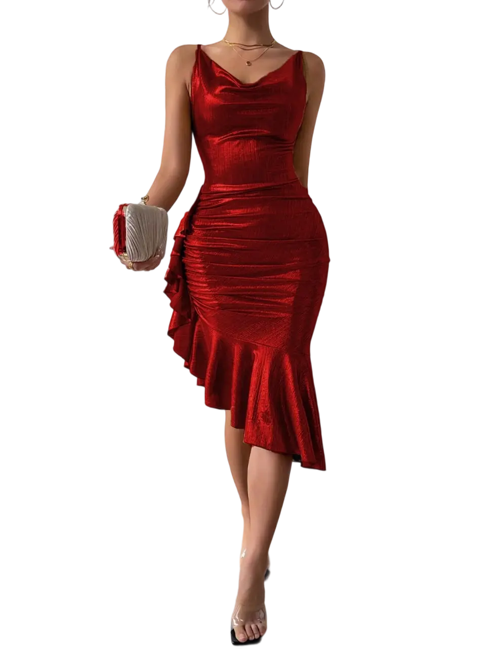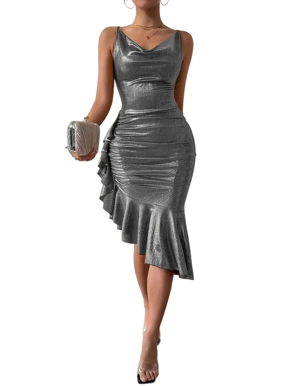 تألقي بإطلالة ساحرة مع هذا الفستان النوم الذهبي الفاخر بتصميم يدمج بين الأناقة والعصرية، مصنوع من قماش لامع بقصة تبرز أنوثتك بكل تفاصيلها. يتميز بفتحة صدر انسيابية وأحزمة متقاطعة على الظهر تضيف لمسة جريئة، بينما تمنح الكشكشة الجانبية والحافة غير المتساوية لمسة درامية تخطف الأنظار تصميم مثالي لمحبات التميز في الحفلات والمناسبات الخاصة قماش ميتاليك ناعم يعكس الضوء بشكل جذاب قصة ضيقة تمنحك قواما ممشوقا وإطلالة لا تنسى