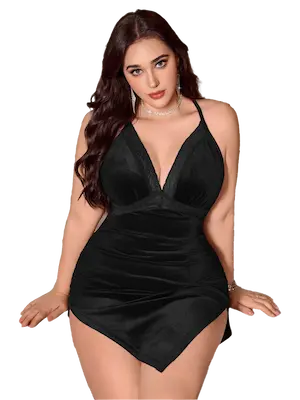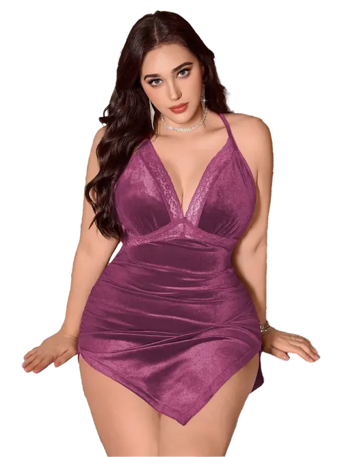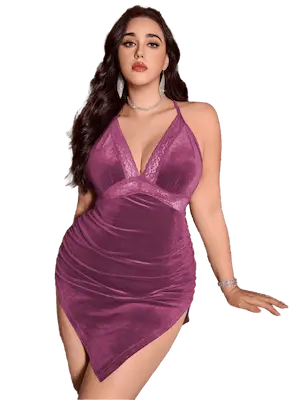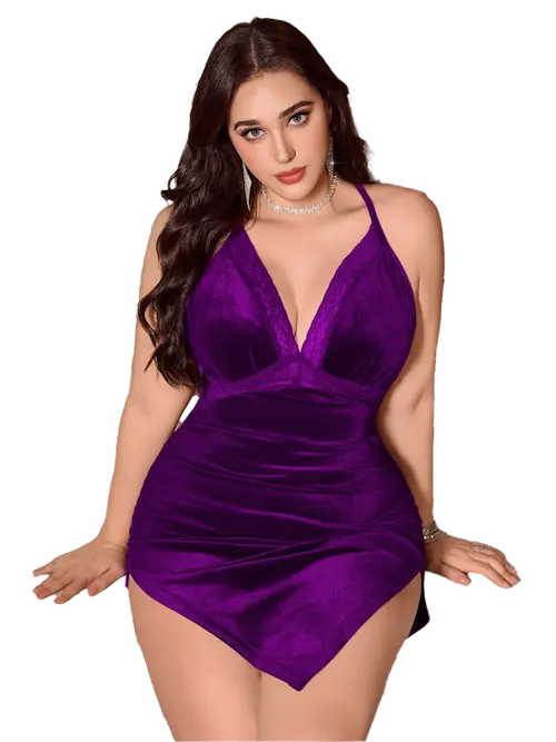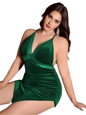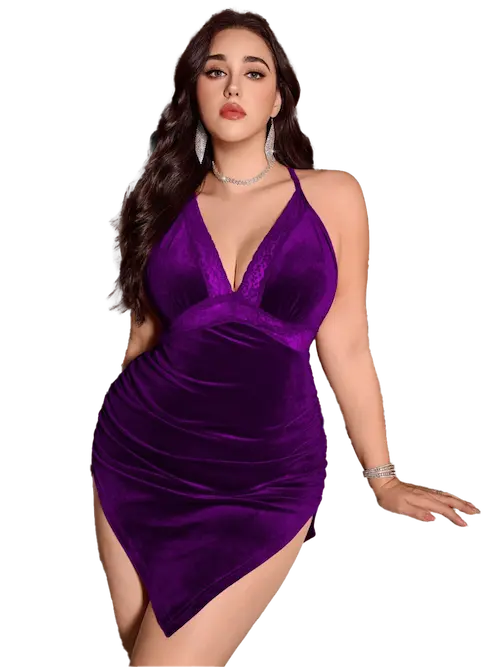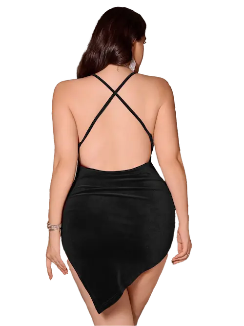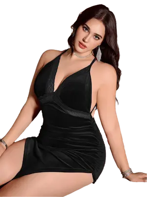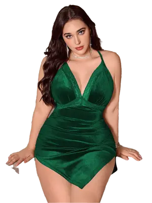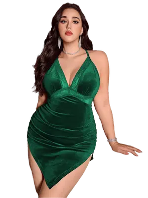 - فستان سهرة قصير من قماش القطيفية الكرستال يأتي الفستان بقصة ضيقة Bodycon تمنح الجسم مظهرًا مشدودًا وطبيعيًا، الثنيات الجانبية تعزز جمال منحنيات الجسم وتمنحه مظهرًا أنثويًا متألقًا، الرقبة مصممة على شكل Halter Neck