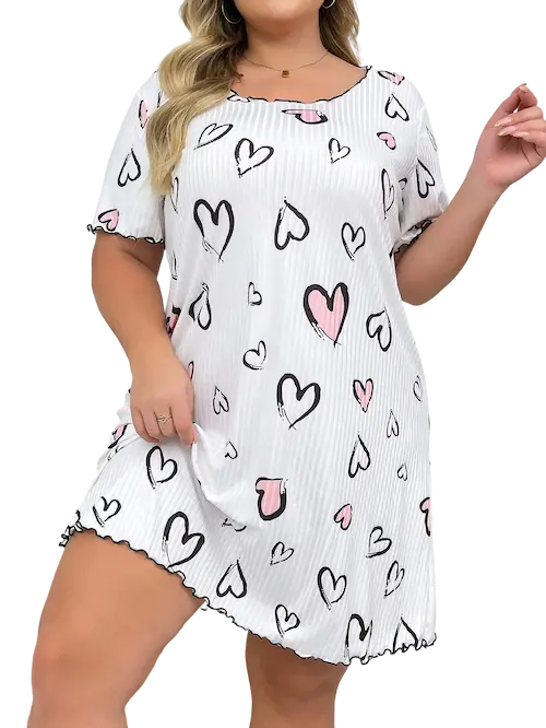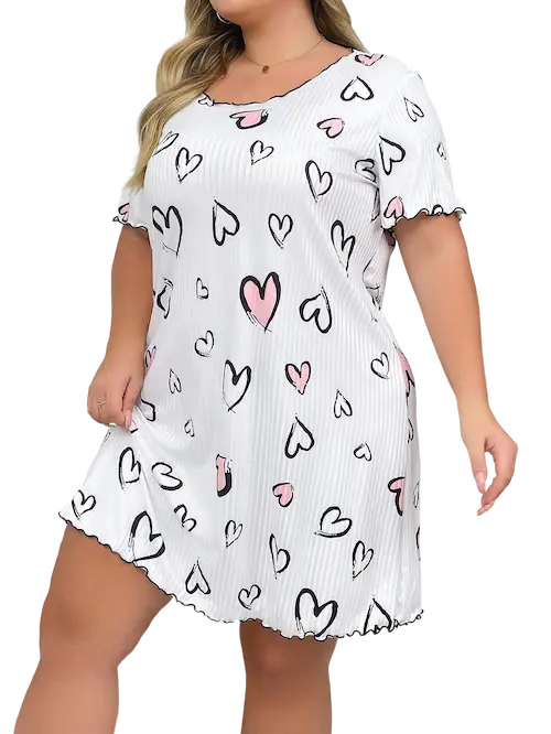 دللي نفسك بإطلالة أنثوية مريحة مع هذا الكاش البيتي القصير من متجرنا بتصميم واسع وانسيابي يوفر لك أقصى درجات الراحة والأناقة داخل المنزل مصنوع من خامة خفيفة وناعمة بتقنية البليسيه تضيف لمسة فريدة ولمعان ناعم يعكس الأنوثة التصميم يتميز بطبعة قلوب عصرية باللونين الأسود والوردي طبعة قلوب تضيف لمسة حب وجاذبية موزعة بشكل أنيق على خلفية بيضاء لتمنحك إطلالة مرحة ومفعمة بالحيوية تناسب لذوات المقاسات الكبيرة تصميم يبرز أنوثتك ببساطة ونعومة
