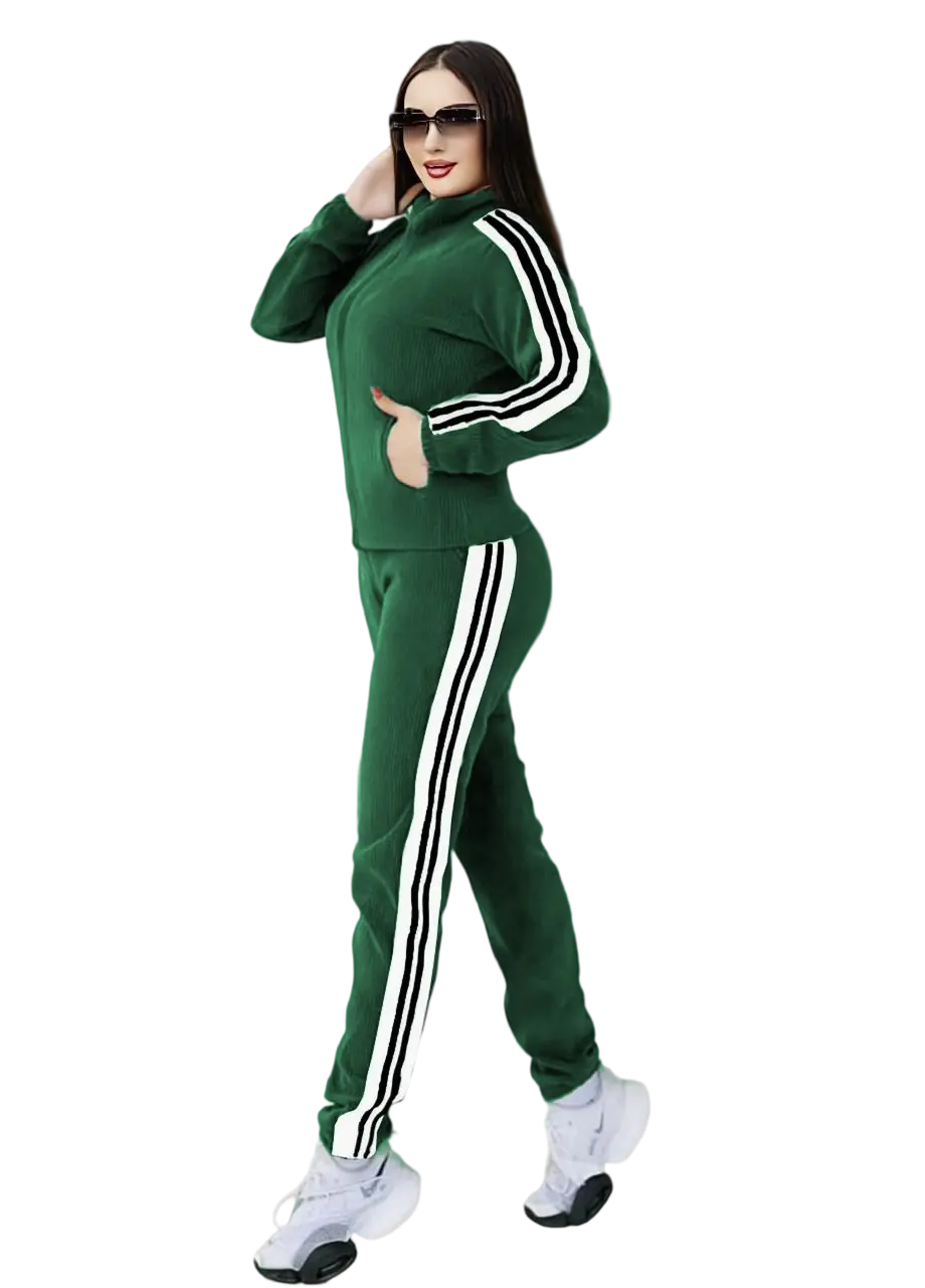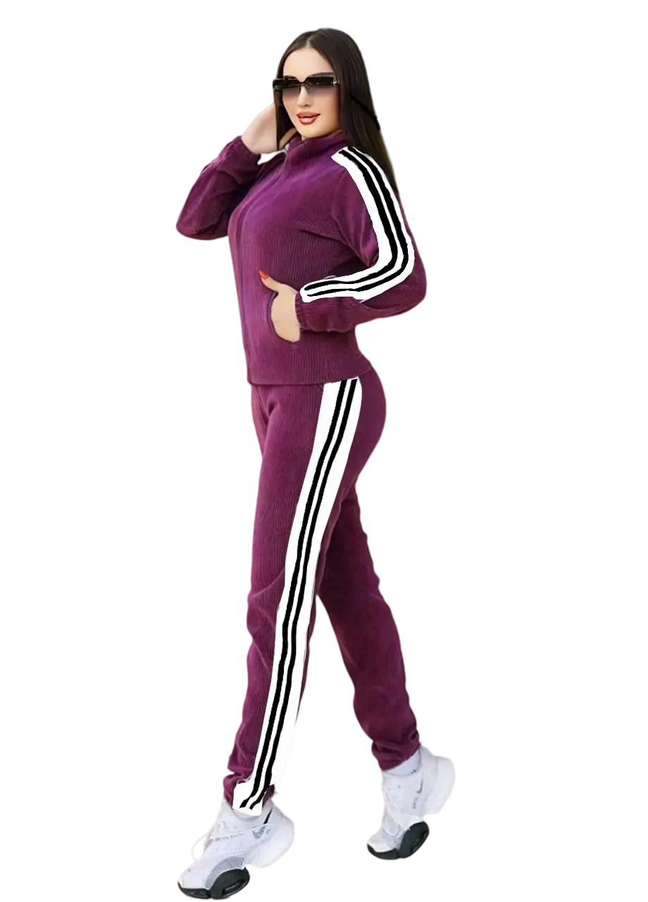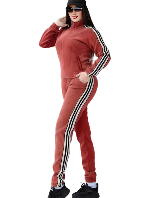 استمتعي بالدفا والأناقة في كل لحظة الترنج المخملي منهدوم بنات بيجمع بين الخامة المريحة والتصميم العصري اللي يليق بكل مصنوع من قماش قطيفة ليكرا مضلع ناعم ومخملي الملمس يمنحك إحساس بالراحة والنعومة على البشرة مع خطوط جانبية تضيف لمسة رياضية أنيقة تصميم الجاكيت والبنطلون يضمن حرية حركة كاملة وإطلالة أنثوية متناسقة استمتعي بإطلالة عصرية تبان في كل تفصيلة لأن الراحة مش معناها التنازل عن الشياكة
