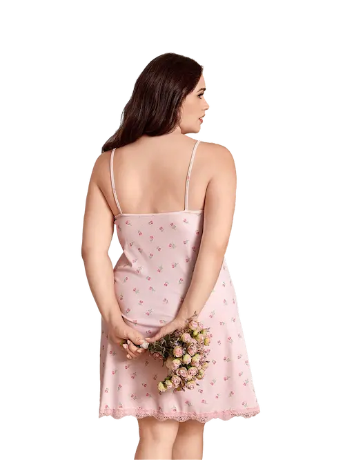 • اللانجيري جاي بلون بينك هادي وناعم، لون أنثوي يدي إحساس بالراحة والهدوء، وده بيخليه مناسب جدًا للنوم أو لوقت الاسترخاء في البيت، النقشة الخفيفة على القماش بتدي لمسة رقيقة من غير زحمة، يعني هتحسي إنه شيك وسمبل في نفس الوقت.