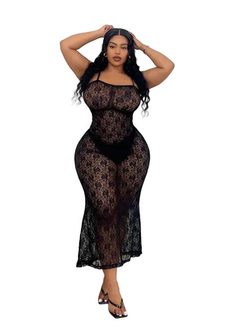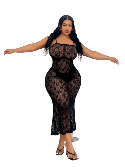 لانجري دانتيل طويل المصنوع من خامة دانتيل ليكرا منقوش متوفر بلون الأسود تمزج بين الجاذبية والأناقة لإضفاء لمسة إضافية من السحر تضمن إطلالة جميلة يضيف لمسة عصرية. اعتنقي التألق والترف في أي مناسبة خاصة مناسب لوزن من 85 كيلو وحتي 110 كيلو اطلبي الأن وكوني متجددة دائمًا