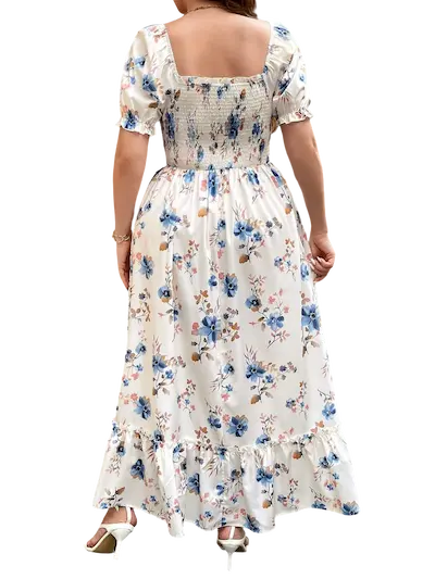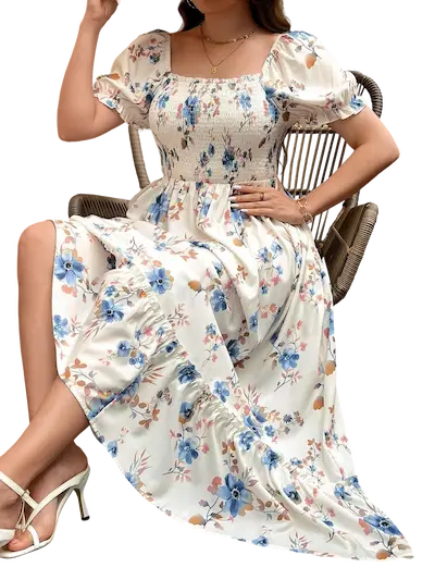 ابرزي جمالك مع فستان الأنيق بلون الأبيض المشجر يتميز بتصميم كالوش واسع يضفي لمسة من الأنوثة، مصنوع من الخامة القطن الناعم لإطلالة مريحة وفاخرة يناسب لذوات المقاسات الكبيرة يبدأ من 90 كيلو وحتي 120 كيلو مما يجعلة قطعة مميز تسحر وجودك وتميزك اثناء الإرتداء سيجعلك محور الإهتمام يعد هذا الفستان لسهراتتك المنزلية