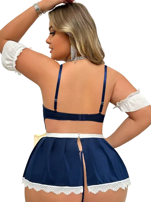 لانجري تنكري خدامه مصنوع من خامات عاليه الجوده المستحدمه تمنحك الأستمتاع بالنعومة على بشرتك حتى تدمج الجمال مع الراحة وهي خامة زبدة ليكرا ف دانتيل ليكرا ناعم منقوش طقم رائع لإطلالات جريئة ولحظات رومانسية. اللون الكحلي يمنحك الأناقة والجاذبية، بينما يضيف تصميم الدانتيل لمسة من الأنوثة والرومانسية مناسب لوزن من 80 كيلو وحتي 110 كيلو احصلي عليه الأن يصلك اينما كنتي