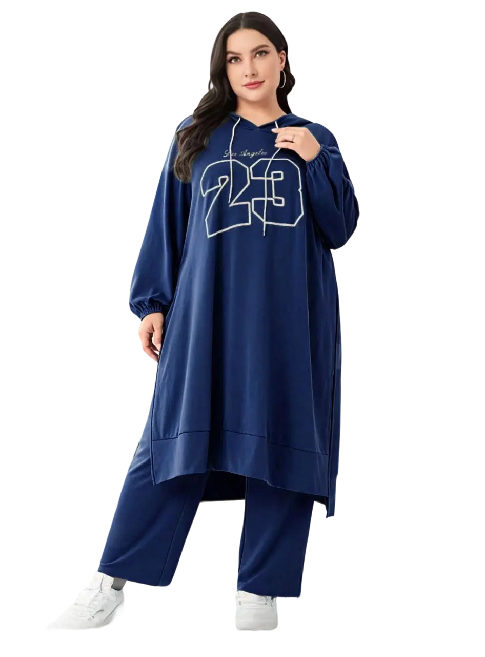 - الطقم مكون من بلوزة طويلة وبنطلون مريح، البلوزة مصممة بقصة واسعة وانسيابية تخفي أي عيوب في الجسم وتدي إحساس بالراحة والثقة، الطول مثالي لأنه يغطي منطقة الحوض بشكل أنيق وعملي، القبعة الهودي بتضيف لمسة سبور عصرية تخلي البجامة مناسبة للبيت والخروج البسيط في نفس الوقت
