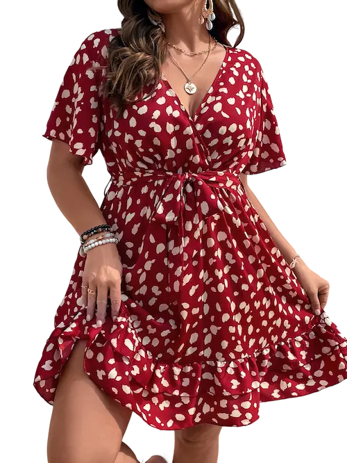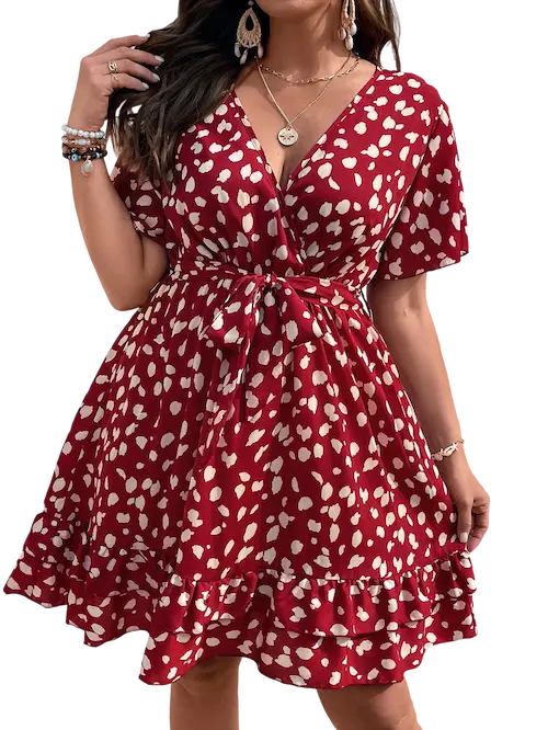 تميزي بإطلالة عصرية ومفعمة بالأنوثة مع فستان المصمم خصيصا ليوفر لك الأناقة والراحة في آن واحد يأتي الفستان بقماش ناعم وخفيف يناسب أجواء الصيف، مزين بنقشة عصرية جذابة بلون أبيض على خلفية حمراء جريئة تمنحك حضورا لافتا التصميم بقصة تبرز جمال القوام وتضيف لمسة أنثوية ساحرة، بينما الأكمام الواسعة والتفاصيل المموجة في الأسفل تضفي حيوية وأناقة لا تقاوم فستان مثالي لمشاوير النهار، أو حتى للطلعات المسائية البسيطة، يناسب مقاسات الـ Big Size ليجمع بين الأناقة والعملية