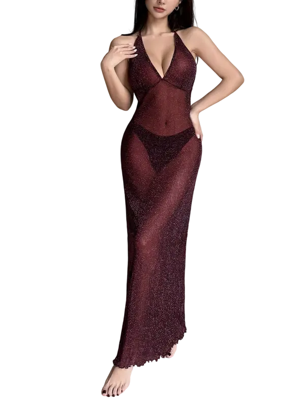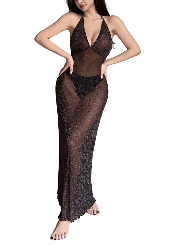 قميص نوم فاتن بجاذبيته، مصنوع من الخامة السورية التي تنسدل برقة وجرأة على الجسد، فتغلفه بلمسة حريرية تكشف أكثر مما تخفي. تصميمه مغر إلى أقصى حد، يبدأ بقصة ناعمة تلامس الصدر بخفة، وتنساب على الجانبين بشفافية مشتعلة، فيما يأتي الظهر مفتوحا بالكامل بلا حواجز يكشف انحناءاتك بدقة مثيرة تخطف الأنفاس الفتحة الخلفية تبدأ من أعلى الرقبة حتى أسفل الظهر، بلا أي تغطية، ما يترك الظهر عاريا تماما بجرأة أنثوية آسرة وكأن الخامة خلقت فقط لتبرزك استمتعي بكل تألق مع هذا التصميم