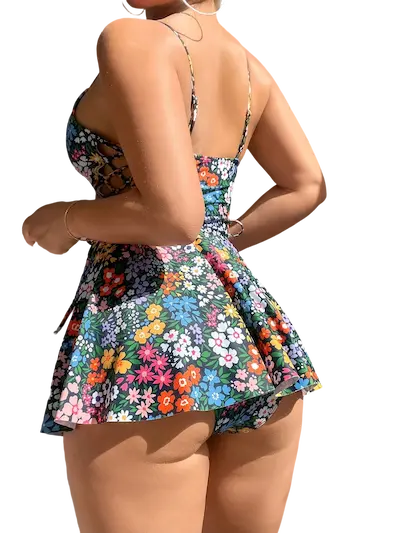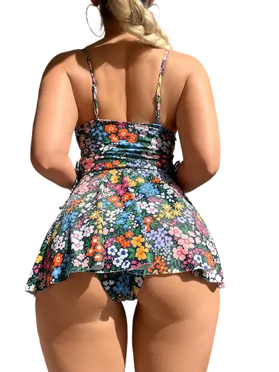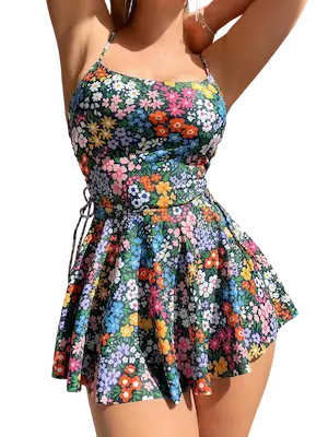 • الجزء السفلي من الفستان يأتي بقصة واسعة ومنسدلة تضيف حركة جميلة أثناء المشي وتعطي إحساساً بالراحة والانتعاش، هذا التصميم يجعل الفستان مناسباً للخروجات الصيفية أو الاستخدام اليومي داخل المنزل، حيث يمنحك مظهراً أنيقاً دون أن تشعري بأي ضيق أثناء الحركة.