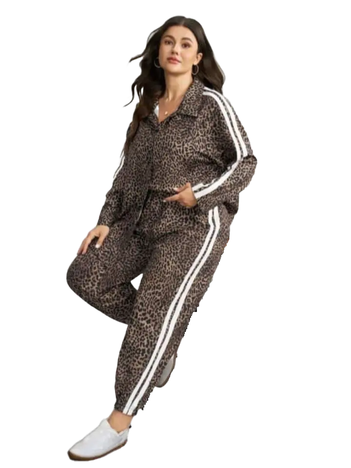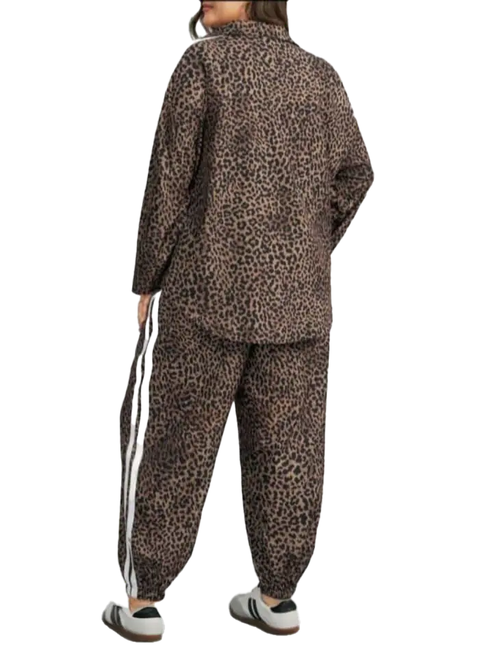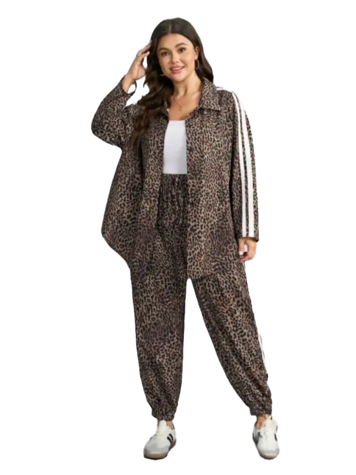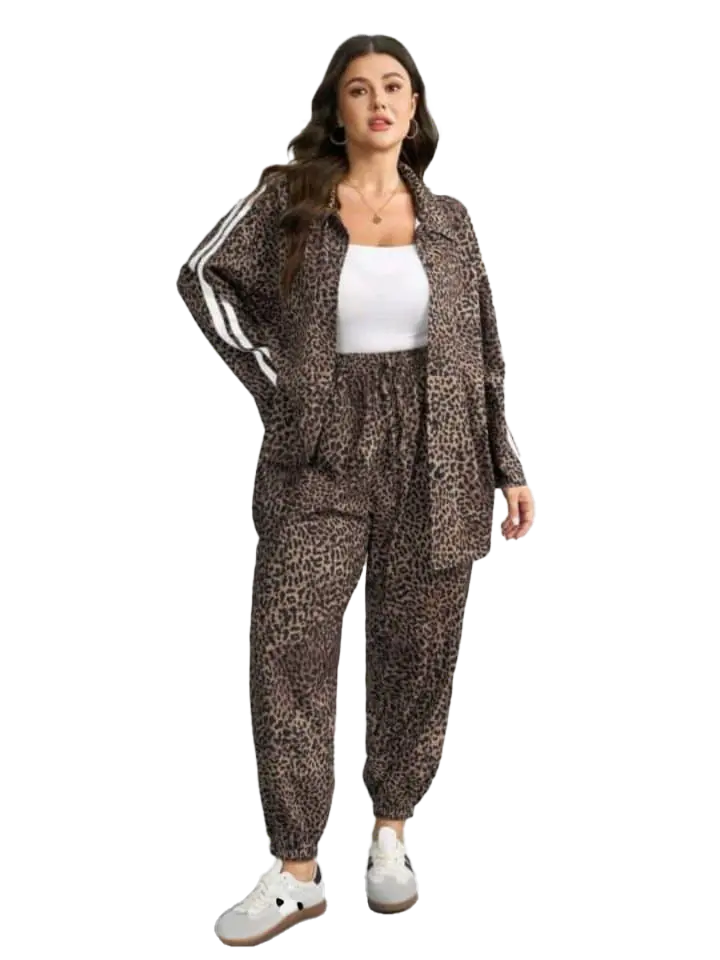 لأن راحتك تستحق ستايل يلفت طقم بنقشة ليوبارد عصرية يجمع بين الجرأة والراحة في تصميم واحد، معمول للي بتحب تظهر بثقة حتى في أبسط لحظاتها قصة مريحة، تفاصيل رياضية أنيقة، ولمسة فخامة تخلي الطقم اختيارك الأول للبيت والمشاوير السريعة.