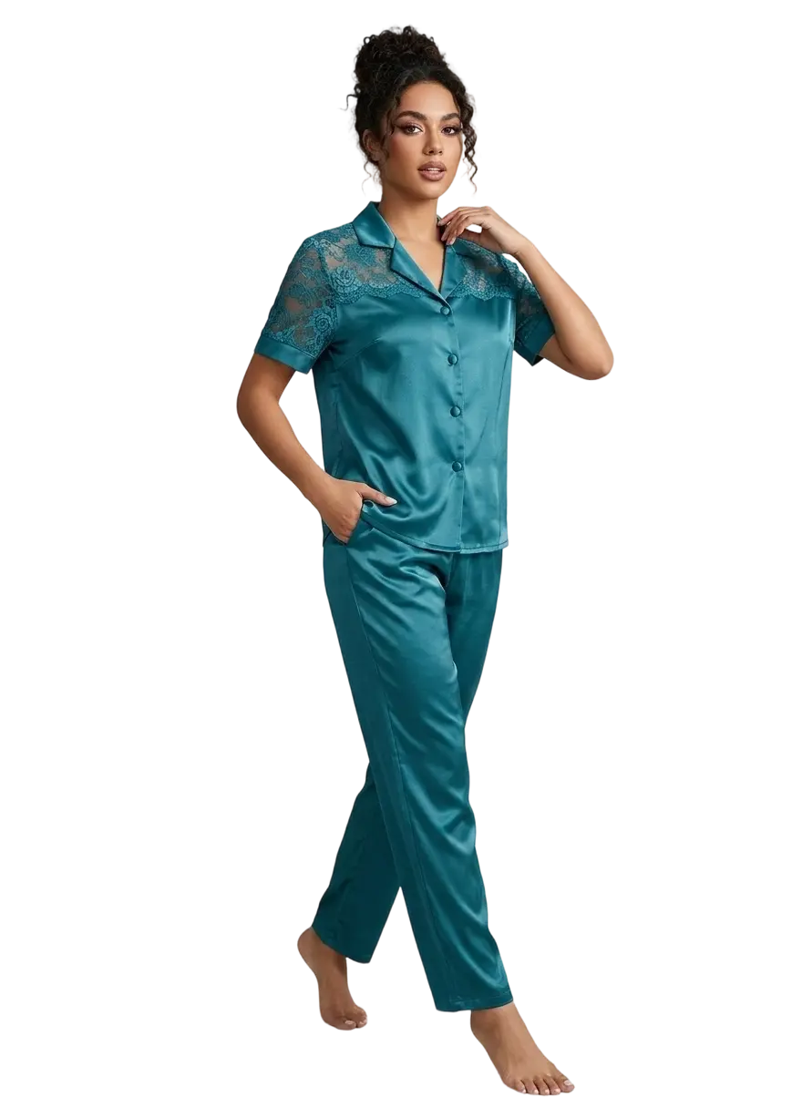 - تفاصيل الدانتيل تضيف قيمة وشكل مميز يخلي الطقم مختلف عن أي بيجاما عادية.