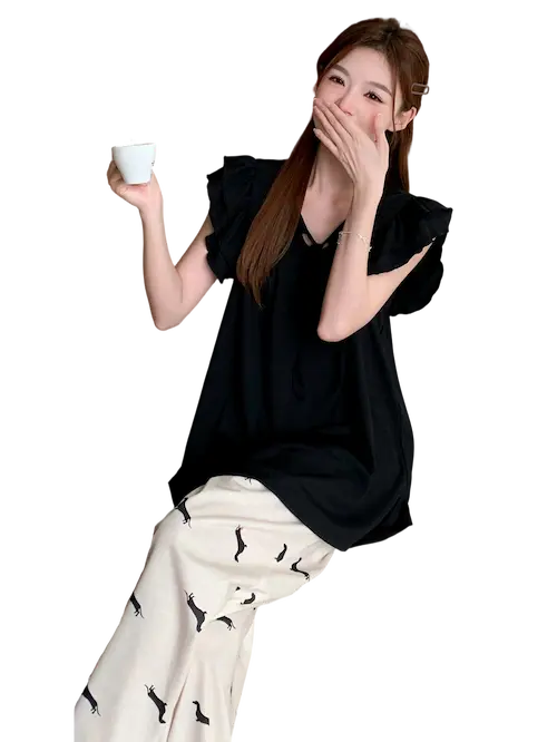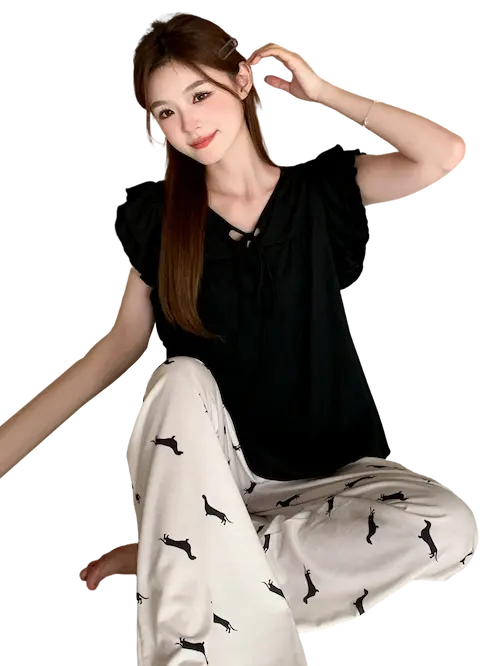 استمتعي مع المزيج رائع من الجاذبية والراحة. صممة هذا الطقم بدقة، ويعد هذه الطقم تجربتك في الاسترخاء بلمسة من الأناقة ارفعي مستوى روتينك الليلي مع رفاهية لا مثيل لها مصنوع من خامة قطن ليكرا خامة ناعمة تساعدك علي تكملة يومك بشكل هادئ اقتني هذه القطعه الان اذا وزنك من 50 كيلو وحتي 75 كيلو القطعة المثالية لفصل مع إضفاء لمسة مميزة إلى دولاب ملابسك بتصميم يجمع بين الراحة والأناقة.