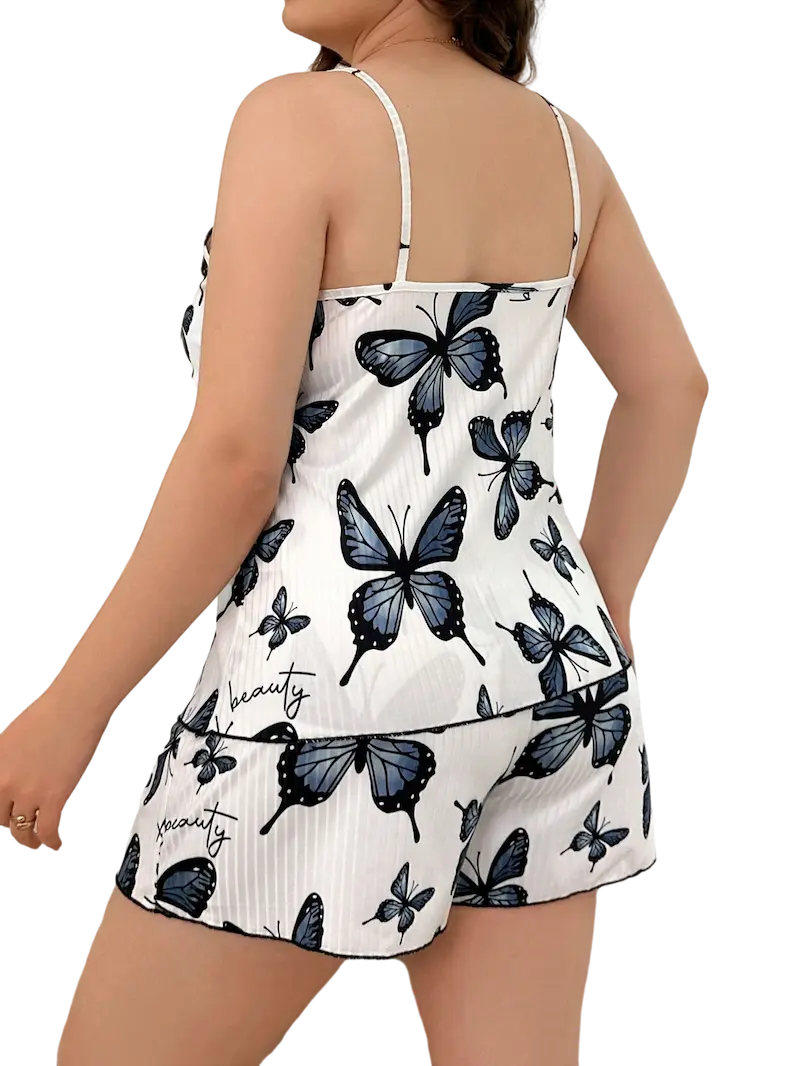 هوت شورت بتصميم عصري وأنيق مصنوع من ريب مضلع ناعم الملمس يتميز بخفة الوزن ومرونة عالية لراحة مثالية أثناء النوم أو الاسترخاء مزين بالكامل برسومات فراشات كبيرة وصغيرة بدرجات الأزرق والأسود، تضيف لمسة أنثوية مرحة وحيوية يأتي بخصر مطاطي مريح مزود برباط ساتان أسود ناعم يعزز من ثباته وأناقة مظهره، مع قصة قصيرة تمنح حرية في الحركة وتناسب الأجواء الصيفية الحواف السفلية مشغولة بدقة ولمسة أنثوية ناعمة، ما يجعله قطعة مثالية للراحة والأناقة في آنٍ واحد