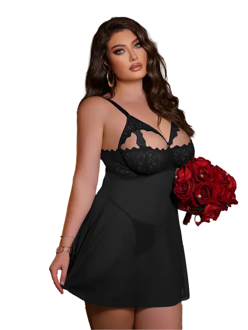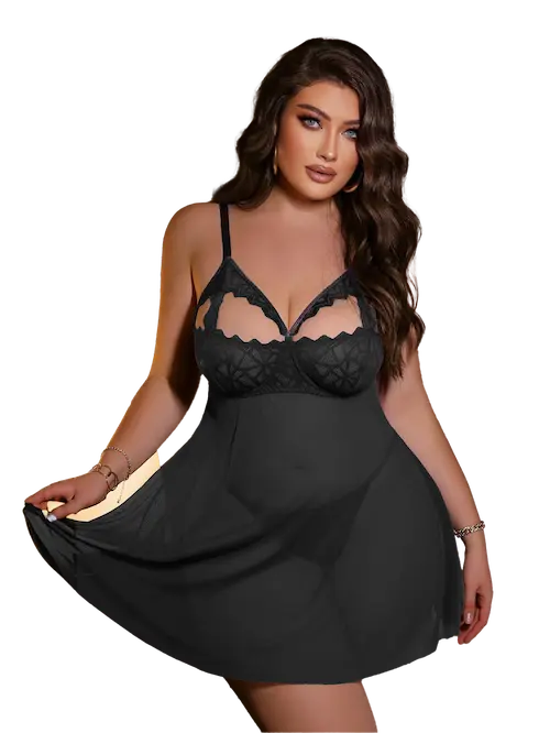 بيبي دول قصير فري سايز دلّلي نفسك بإطلالة تجمع بين النعومة والجرأة، القطعة التي تمنحك مظهراً أخاذاً بفضل مزيج الأقمشة الشفافة والدانتيل المزخرف الذي يبرز تفاصيلك الأنثوية بأناقة راقية، تم تصميم هذا الموديل خصيصًا ليمنحك توازناً مثالياً بين الإغراء والنعومة، بفضل قصّته القصيرة وخاماته المريحة التي تلتف حول الجسد بانسيابية. إنه اختيارك المثالي لإطلالة مسائية ناعمة تفيض بالأنوثة دون تكلّف يتكون من :