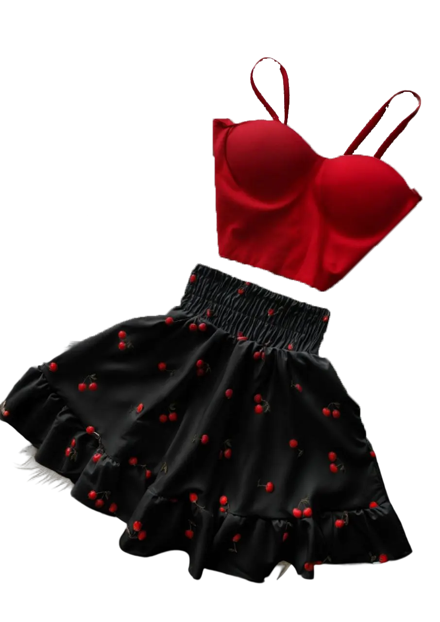 طقم أنثوي جريء يجمع بين الأناقة والإثارة بتصميم عصري يعكس الثقة والأنوثة مطبوع بكرز أحمر يمنحك إطلالة مرحة ومغرية في نفس الوقت خامة ناعمة ومريحة على البشرة تصميم قصير عصري يبرز أنوثتك ألوان متناسقة ومبهجة تضيف لمسة جاذبية خاصة خيارك المثالي لإطلالة منزلية مفعمة بالأنوثة والمرح هو خيارك الأمثل لتتألقي بجمال لافت ولمسة مفعمة بالأنوثة