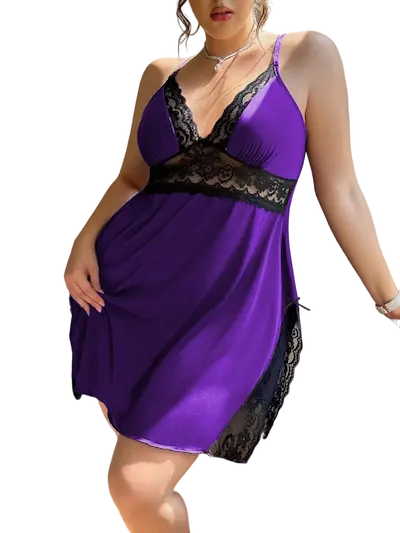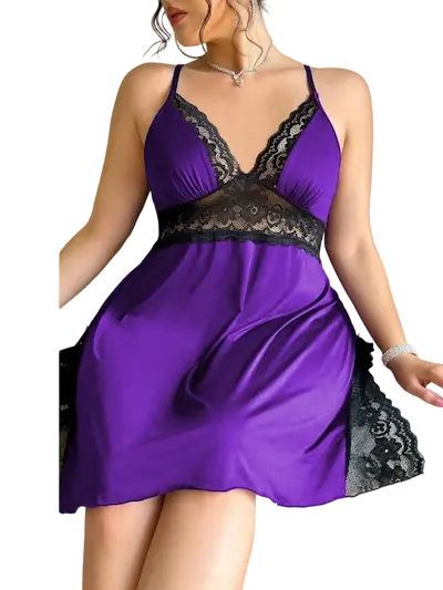 قميص نوم خامة طرية دلّلي أنوثتك مع بيبي دول بيج سايز شفاف، التصميم الجديد الذي يجمع بين الإغراء والرقي في قطعة واحدة ناعمة كنسمة الليل استمتعي بملمس الخامة الزبدة الفاخر ولمسة الليكرا المرنة التي تنساب على جسدك بانسيابية مدهشة، لتمنحك إحساسًا بالراحة والأنوثة المطلقة اللون الموف الساحر يضفي لمسة غموض راقية، بينما يبرز الدانتيل الأسود تفاصيل التصميم بجرأة أنثوية فاخرة يتكون من
