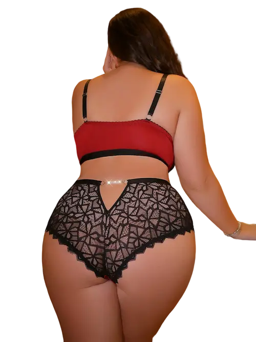طقم لانجري فاخر مكون من برا وبانتي بلون أحمر ناري مع تطريز دانتيل أسود أنيق يضفي لمسة من الجاذبية والإثارة البرا بتصميم داعم مع أحزمة رفيعة تزيد من جمال الصدر وتمنحك مظهرا أنثويا آسرا بينما البانتي بخصر عالي مزين بالدانتيل الشفاف يمنحك قوام ممشوق وإطلالة مثيرة تخطف الأنظار طقم مثالي للمرأة التي تبحث عن الأناقة والجرأة في آن واحد