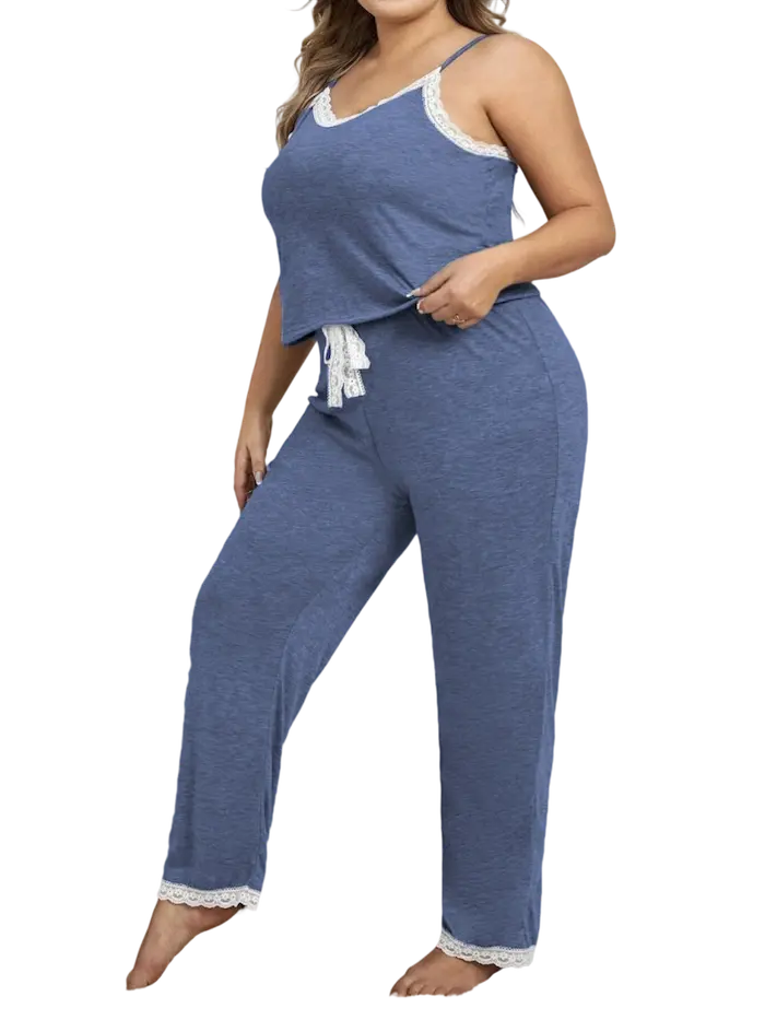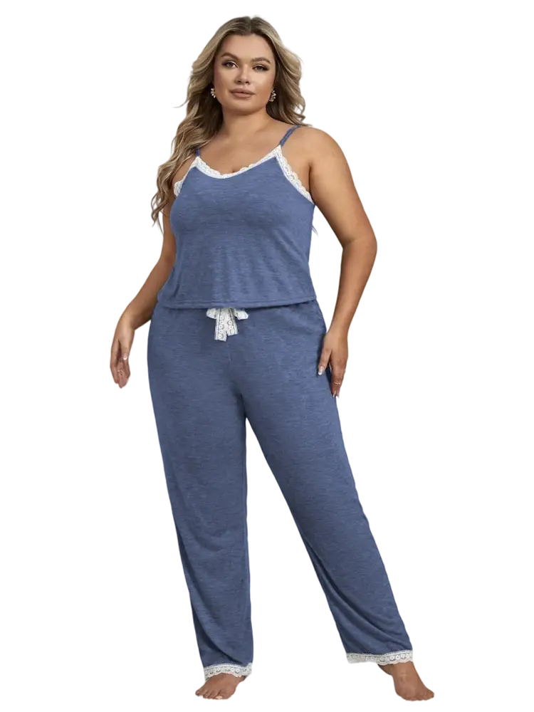 مقاسات البيجامة مناسبة للاوزان الكبيرة ، والقماش الليكرا الخفيف بيساعد على إنه الراحة ويناسب الجسم بدون التسبب في أي ضيق. مثالي للسيدات االذين يريدون ملابس مريحة بعد يوم طويل أو حتى كإطلالة هادئة وجذابة وقت الاسترخاء. يمكن تنسيقه مع أي إكسسوارات بسيطة أو روب خفيف، وده بيخليها قطعة أساسية في دولاب كل سيدة.
