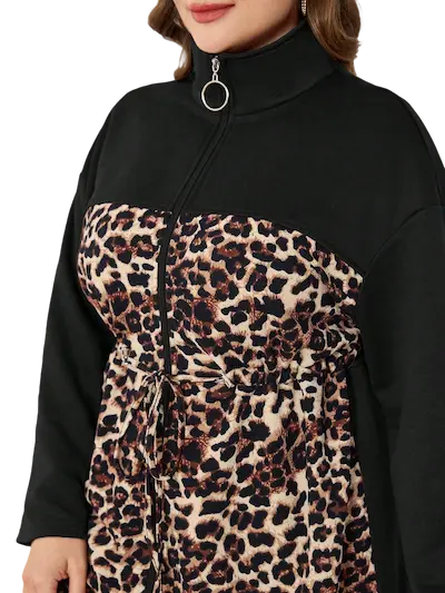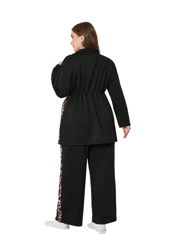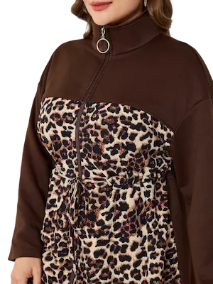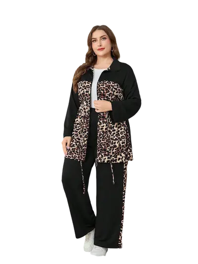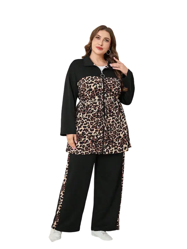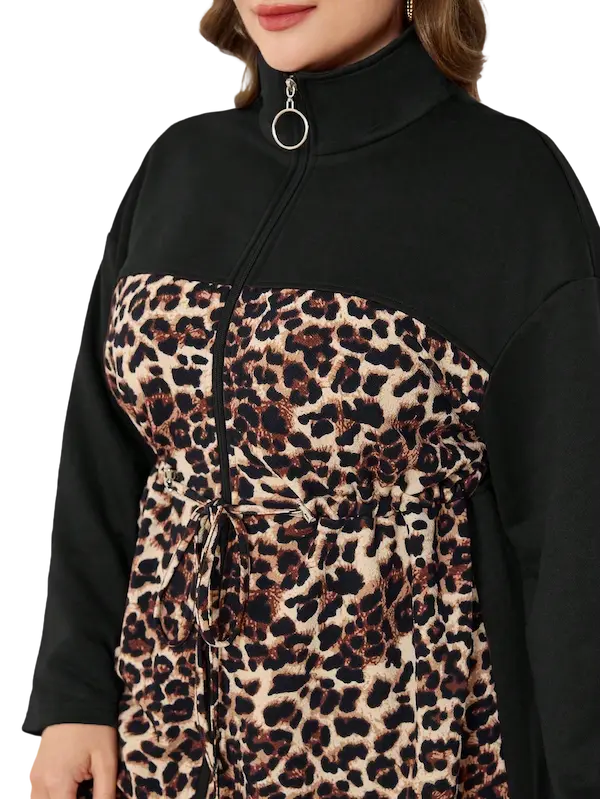 • البلوزة: مصممة بقَصّة واسعة مريحة مع سحاب أمامي يضيف لمسة عملية ويسهّل الارتداء، كما يتيح لكِ التحكم في شكل الإطلالة حسب رغبتك، نقش التايجر في الجزء الأمامي يمنح التصميم جرأة وأناقة واضحة، مع دمجه بلون سادة هادئ يعطي توازنًا بصريًا أنيقًا، الخصر مزوّد برباط قابل للتعديل، ليمنحكِ مرونة في التلبيس ويبرز القوام بشكل متناسق دون أي إحساس بالضيق، الأكمام الطويلة الواسعة تضيف راحة إضافية ولمسة عصرية تناسب الأجواء المختلفة.