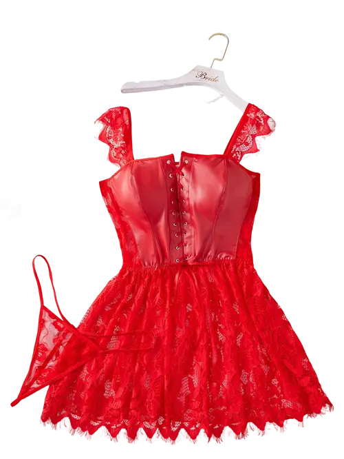 دللي أنوثتك مع هذا الموديل الفاخرقميص نوم بتصميم جريء يجمع بين الأناقة والإثارة الصدر من خامة الجلد الناعم بتفصيلة كورسيه مربوطة لإبراز القوام بشكل ساحر بينما من الاسفل من الدانتيل الشفاف المطرز بالورود ليمنحك لمسة أنثوية مفعمة بالجاذبية خلفية مفتوحة بتصميم مثير يزيد من سحر الإطلالة ويجعلها لا تقاوم متوفر بمقاسات كبيرة ليتناسب مع كل الأجسام ويمنحك ثقة لا مثيل لها