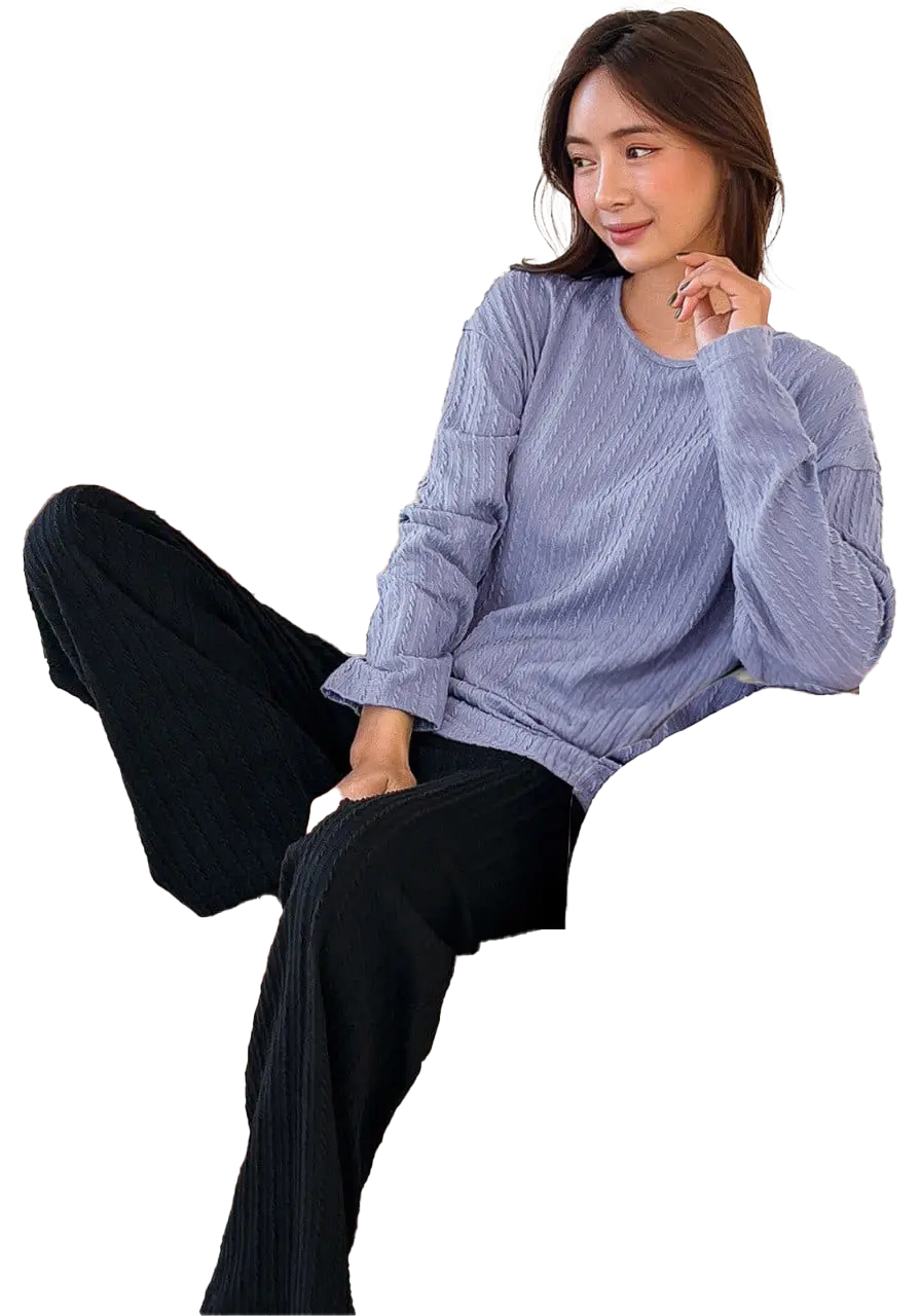 البيجاما دي مصممة مخصوص علشان تمنحك أعلى درجات الراحة والدفء في الشتاء، من غير ما تتنازلي عن الشياكة ولا الستايل خامتها الشتوية الناعمة بملمس مخملي خفيف تعتبر من أكثر الخامات المريحة للبس اليومي، لأنها تحافظ على حرارة الجسم وفي نفس الوقت ملمسها المضلع يضيف إحساس دافئ وفاخر، وتفاصيلها الدقيقة تبين إنها قطعة عالية الجودة البلوزة تأتي بقصة مريحة وبسيطة، بلون ليلاكي هادئ يعكس رقة وأناقة، مع أكمام طويلة تمنحك دفء مستمر القماش المضلع يعطي شكل راقي وبسيط في نفس الوقت، يناسب البنات اللي بتحب الستايل الهادئ والعملي البنطلون باللون الأسود بيكمل اللوك بتناسق جميل، وقصته الواسعة تضيف حرية حركة مثالية سواء للجلوس، الشغل من البيت، أو الاسترخاء خامة شتوية ناعمة تدفي بدون ما تسبب ثقل تصميم عملي وشيك يناسب كل الأعمار والأذواق قصة مريحة وفضفاضة تضمن حرية حركة طوال اليوم ملمس مخملي مضلّع يعطي شكل أنيق ومميز ألوان هادئة تمنحكي راحة نفسية وإحساس بالدفء جودة عالية تحافظ على الشكل بعد الغسيل بدون بهتان أو كرمشة مناسبة للبنات اللي بتدور على الراحة مع شكل راقٍ في البيت مثالية للبيت في الأيام الباردة للوقت اللي تحبي ترتاحي فيه بعد الشغل أو قبل النوم مناسبة لجلسات الشتاء الدافئة في الصالون ممتازة للبنات اللي بيشتغلوا من البيت وعايزين لبس شيك ومريح البيجاما دي ببساطة قطعة أساسية في الشتاء تجمع بين الدفء، الأناقة، والراحة في موديل واحد يخلي يومك أدفى وأهدى وأشيك.