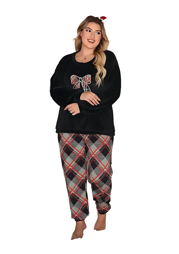 القصة مريحة وواسعة تناسب البيج سايز، والأكمام طويلة لتوفير أكبر قدر من الدفا، مع طول مثالي يخلي التشيرت ثابت ومريح أثناء الحركة أو الجلوس. - البنطلون مصمم بنقشة مربعات عصرية بألوان متناسقة تضيف روح مختلفة للطقم وتكسر السادة بشكل شيك.