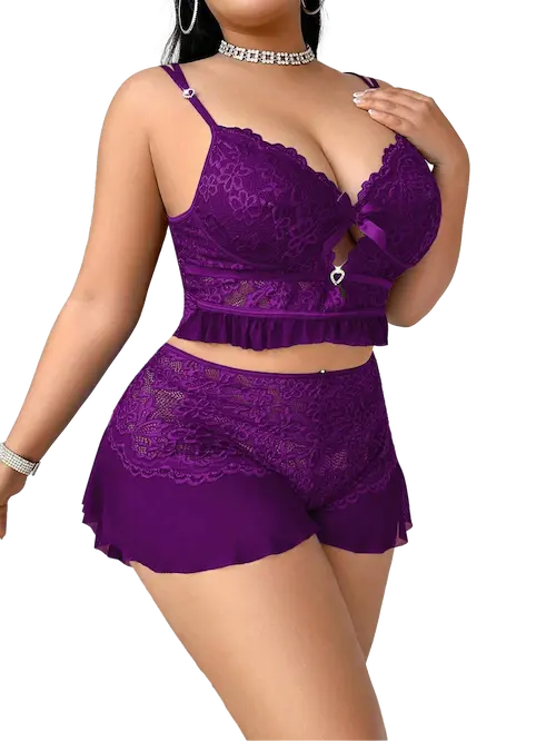 طقم شورت دانتيل رقيق كود 0303